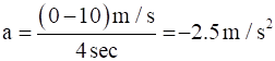 Time taken by the vehicle to completely stop, t = 4 sec