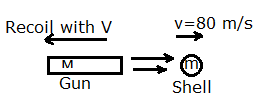 A shell of mass 0.020 kg is fired by a gun of mass 100 kg. If the muzzle speed of the shell is 80 m s-1, what is the recoil speed of the gun?