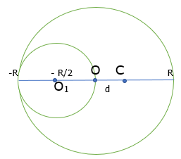 From a big uniform disc of radius R with centre O, a smaller circular hole of radius R/2 with its centre O1 (where OO1 = R/2) is cut out.