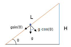 H/sin(θ) = 0× t + 1/2 g sin(θ) t2