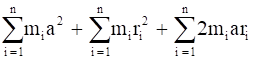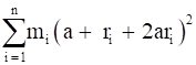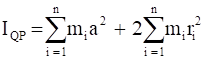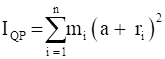 The perpendicular distance of mass mi, from the axis QP = a + ri