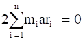 Now, at the center of mass, the moment of inertia of all the particles about the axis passing through the center of mass is zero, that is,