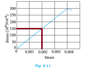 We can clearly observe that the strain at the stress point 150 × 106 N/m2, is 0.002.