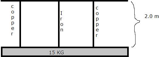 Those at each end are of copper and the middle one is of iron. Determine the ratios of their diameters if each is to have the same tension.