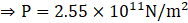 So the pressure at the tip of anvil is 2.55 × 1011 Pa