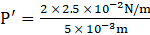 Surface tension of the soap solution, S = 2.50 × 10-2 N / m