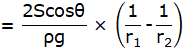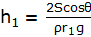 Height of water rise, ![]()