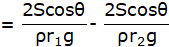 Let h1 and h2 be the height rise of water in tube1 and tube2 respectively. Then the height are given by,