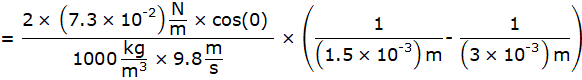 Surface tension of water, S = 7.3 × 10-2 N/m