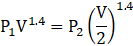 Where P1 and P2 are initial and final pressures of the system respectively, V1 and V2 are initial and final volume of the system respectively, γ is the specific heat ratio of the gas since, H2 is a diatomic gas, for a diatomic gas