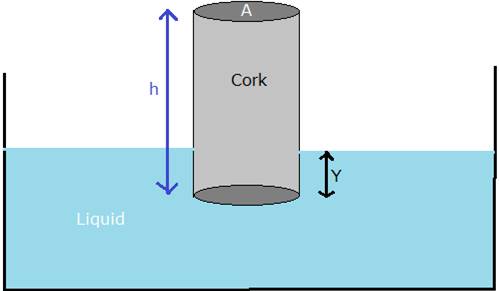 Where ρl is the density of the liquid, Y is the height if cork inside liquid