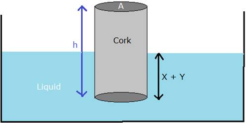 Here surface area of cork is A, and suppose length inside liquid is Y so the volume of cork inside liquid is