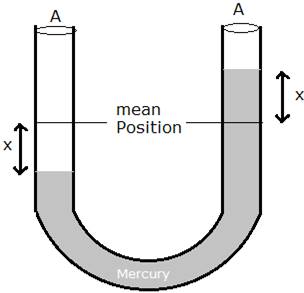 Here surface area of cross section of tube is A, excess height of mercury on side of tube is 2x so the excess volume of mercury on one side of the U-Tube is
