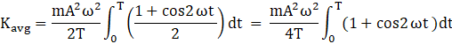 Now to find average kinetic Energy of the body in time interval T (time period of one complete oscillation) we will integrate the instantaneous kinetic energy with respect to time in the interval and then divide it with total time T