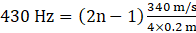 Source frequency = nth normal mode of frequency, fn = 430 Hz