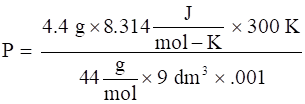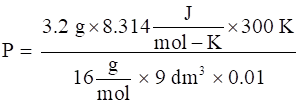 What will be the pressure exerted by a mixture of 3.2 g of methane and 4.4 g of carbon dioxide contained in a 9 dm3 flask at 27°C ?