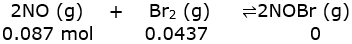 When 0.087 mol of NO and 0.0437 mol of Br2 are mixed in a closed container at constant temperature, 0.0518 mol of NOBr is obtained at equilibrium. Calculate equilibrium amount of NO and Br2.