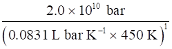 At 450K, Kp= 2.0 × 1010 bar for the given reaction at equilibrium.