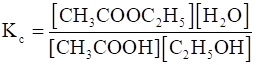 CH3COOH (l) + C2H5OH (l) CH3COOC2H5 (l) + H2O (l)
