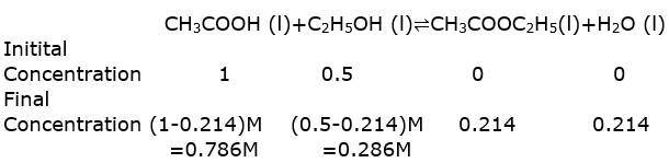 (iii) Starting with 0.5 mol of ethanol and 1.0 mol of acetic acid and maintaining it at 293 K, 0.214 mol of ethyl acetate is found after sometime. Has equilibrium been reached?