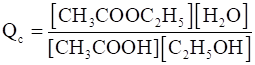 For the given reaction of ethanol and acetic acid that results in the formation of ethyl acetate and water, the reaction quotient is-