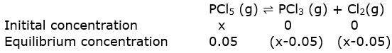 For the given reaction, let’s assume that the initial molar concentration of PCl5 is x mol/L.