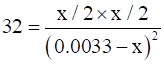 2BrCl (g) ⇌ Br2 (g) + Cl2 (g) for which Kc= 32 at 500 K. If initially pure BrCl is present at a concentration of 3.3 × 10–3 mol L–1, what is its molar concentration in the mixture at equilibrium?