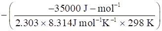 Where, ΔG° is the standard free change of a reaction, value of ΔG° is -35000 (calculated in part(a))