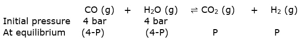 Partial pressure of CO (PCO) = Partial pressure of H2O (PH2O) = 4.0 bar