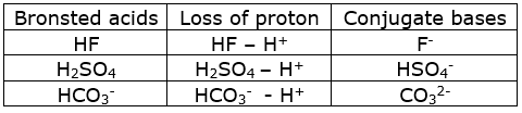 What will be the conjugate bases for the Bronsted acids: HF, H2SO4 and