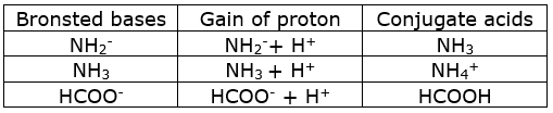 Write the conjugate acids for the following Bronsted bases: ![]()