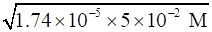 ⇒[H+]2 = 1.74 × 10–5 × 5 × 10-2M