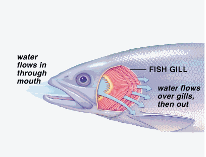 Figure to show the process of breathing in fish