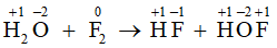 Here, we have observed that the oxidation number of F increases from 0 in F2 to + 1 in HOF. Also, the O.N. dereases from 0 in F2 to -1 in HF. Thus, in the above reaction, F is both oxidised and reduced. Hence, the given reaction is a redox reaction.
