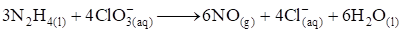 N2H4(l) + ClO–3(aq) → NO(g) + Cl–(g)