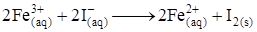 The possible reaction between Fe3+(aq) and I(aq) can be represented by the following equation: –