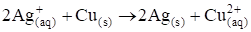 The possible reaction between Ag+(aq) and Cu(s) can be represented by the following equation:–