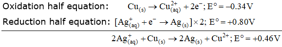 E° for the overall reaction is positive. Thus, the reaction between Ag+(aq) and Cu(s) is feasible.