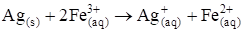 The possible reaction between Ag(s) and Fe3+(aq) can be represented by the following equation: -