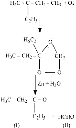 Hence, the IUPAC names of the products obtained by the ozonolysis of 2-Ethylbut-1-ene are product (I) is pentan-3-one and Product (II) is methanal.