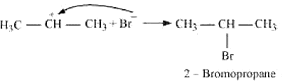 Step – 2: Secondary carbocations are more stable than primary carbocations. Hence, the former predominates since it will form at a faster rate. Thus, in the next step, Br– attacks the carbocation to form 2 – bromopropane as the major product.
