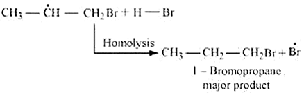 Now, secondary free radicals are more stable than primary radicals. Hence, the former predominates since it forms at a faster rate. Thus, 1 – bromopropane is obtained as the major product.