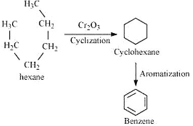 Conversion of Hexane into benzene takes place by the following reaction procedure : -
