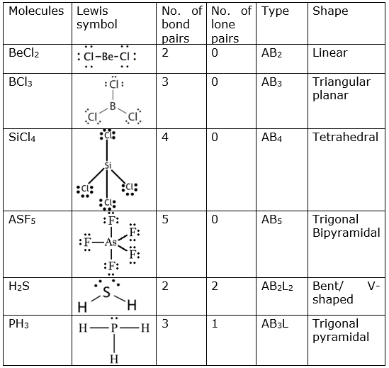 Note: Each line in a Lewis symbol represent the bond pairs. The lone pairs on the central atom should be counted.