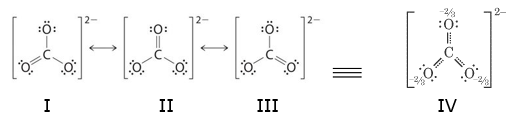 The structure I, II and III represent the three canonical forms (resonating structures) of CO32-