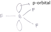 As a result of its small size and high electronegativity, boron tends to form monomeric covalent halides. These halides have a planar triangular geometry. This triangular shape is formed by the overlap of three sp2 hybridized orbitals of boron with the sp orbitals of 3 halogen atoms. Boron is sp2 hybridized in BF3.