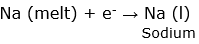 At anode: 2Cl- (melt) → Cl2 (g) + 2e-