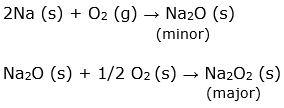(ii) When sodium metal is heated in free supply of air, sodium peroxide (Na2O2) along with a small amount of sodium oxide (Na2O) is formed.