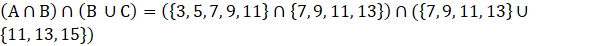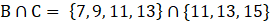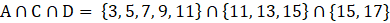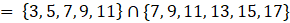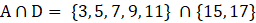 If A = {3, 5, 7, 9, 11}, B = {7, 9, 11, 13}, C = {11, 13, 15} and D = {15, 17}; find: