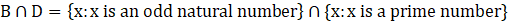 C = {x: x is an odd natural number} and D = {x: x is a prime number}, find: